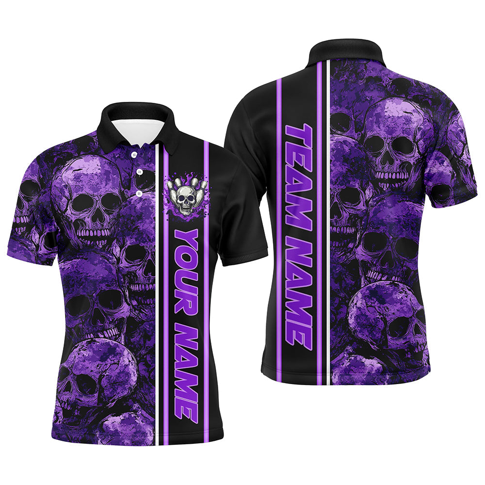 Personalized Skull Bowling Shirt For Men Custom Team's Name Bowler Jerseys | Purple NQS8560