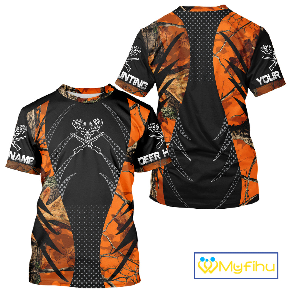 Personalized Deer Hunting Orange Camo 3D Printed Shirts, Hunting Gift Ideas for Hunter NBT237