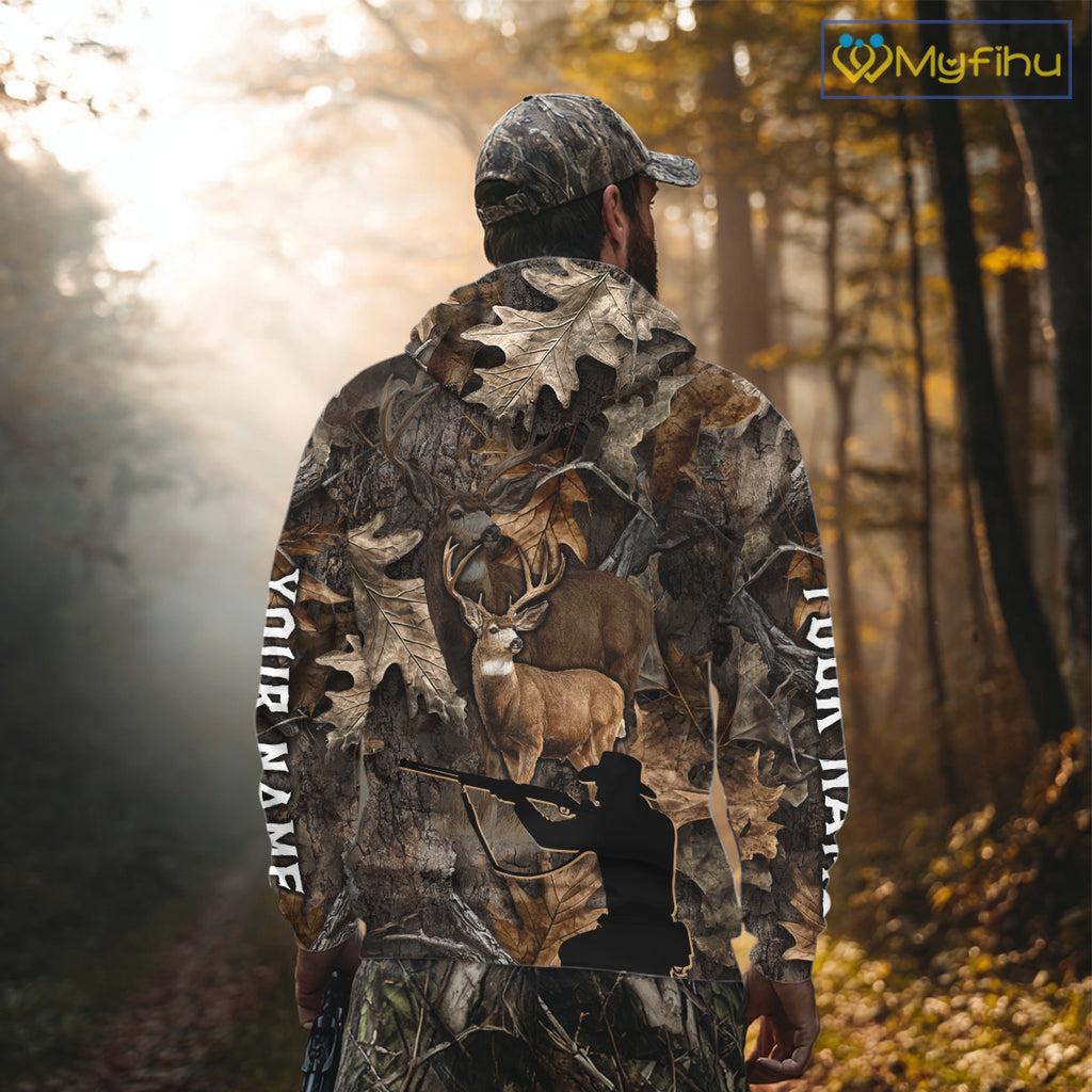 Personalized Whitetail Deer Hunting Brown Camo with Hunter 3D Print Custom Name Shirts, Hunting Gift NBT269