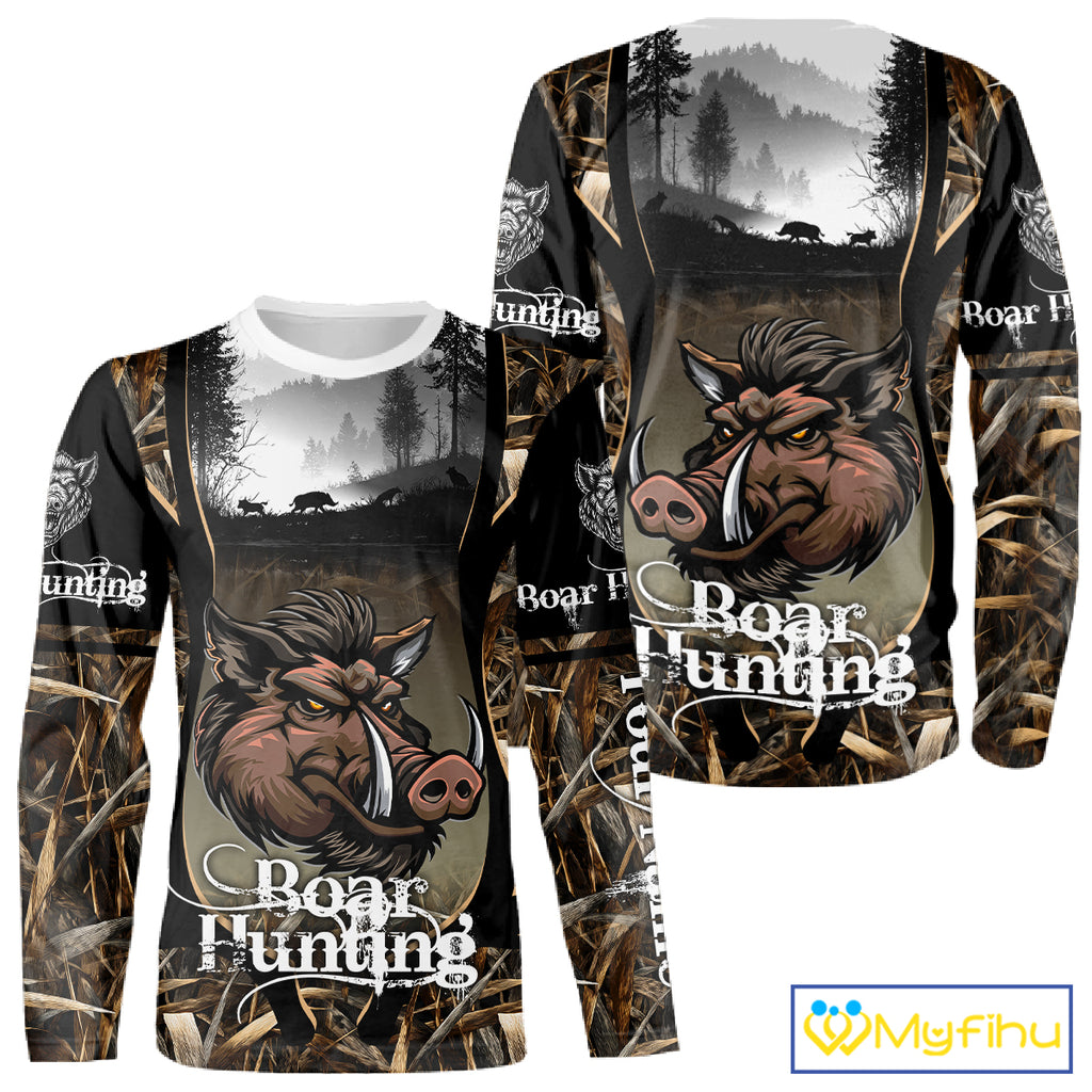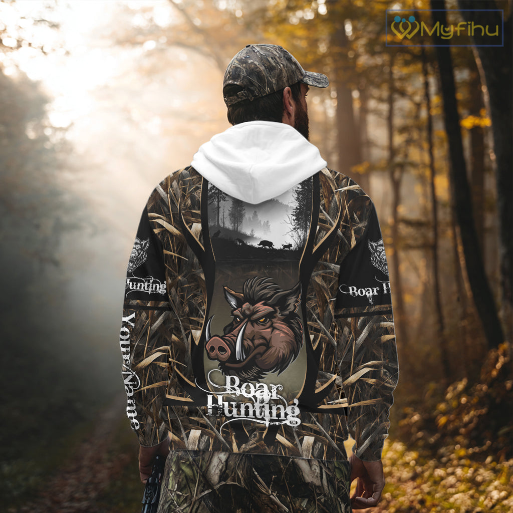 Personalized Wild Boar Hunting Camo 3D Print Custom Name Shirts, Hunting Gifts NBT195