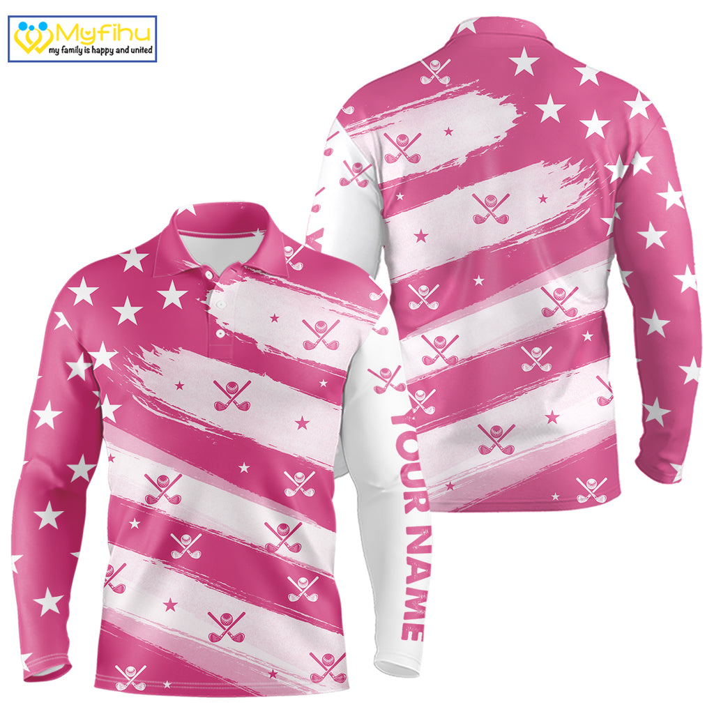 Pink American Flag Men golf polo shirt custom patriotic golf outfits men, cool golf gifts NQS10092