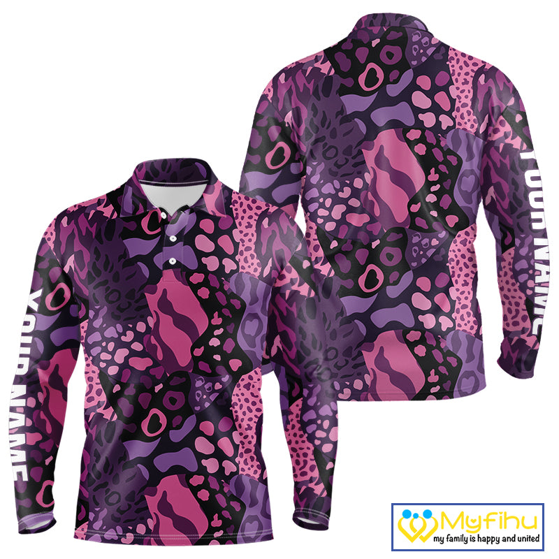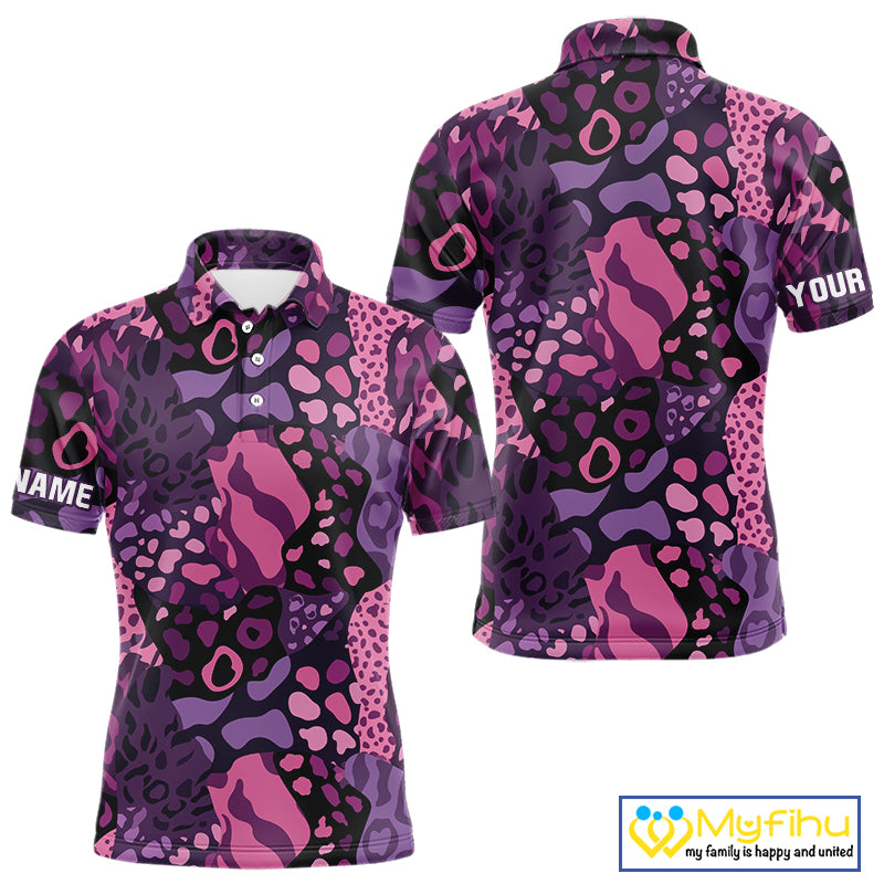 Pink and purple animal prints pattern Mens Golf Polo Shirts Custom Mens golf tops, golfing gifts NQS10243