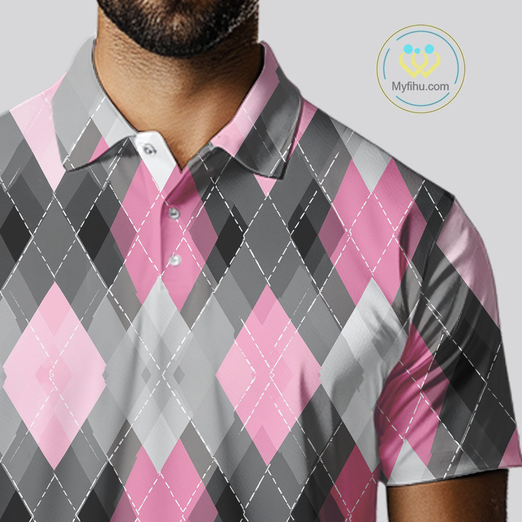 Pink argyle pattern Mens golf polo shirt custom best team golf shirts, golfing gifts NQS10407