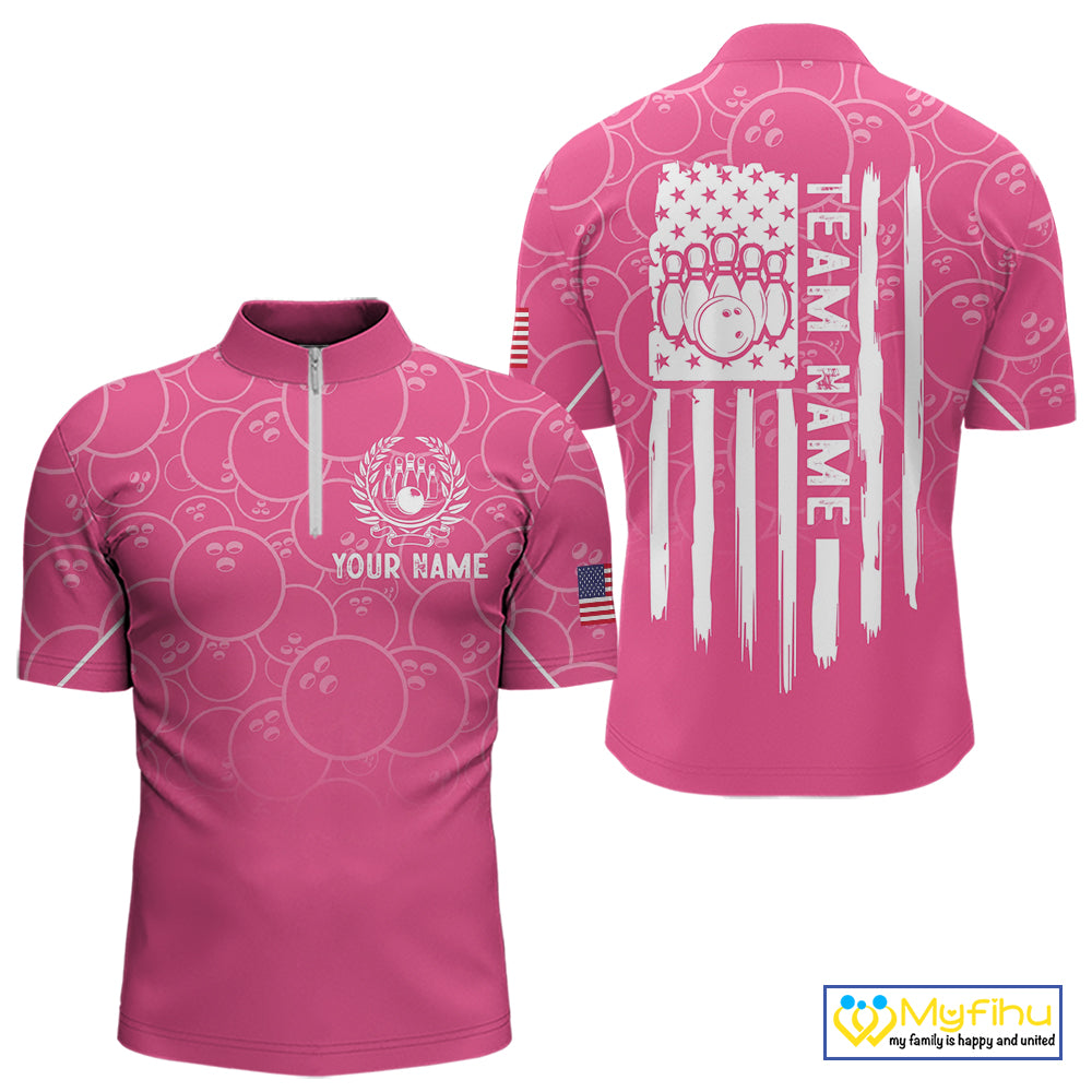 Pink bowling camo Mens bowling shirts Custom American flag patriotic bowling team league jerseys NQS10714