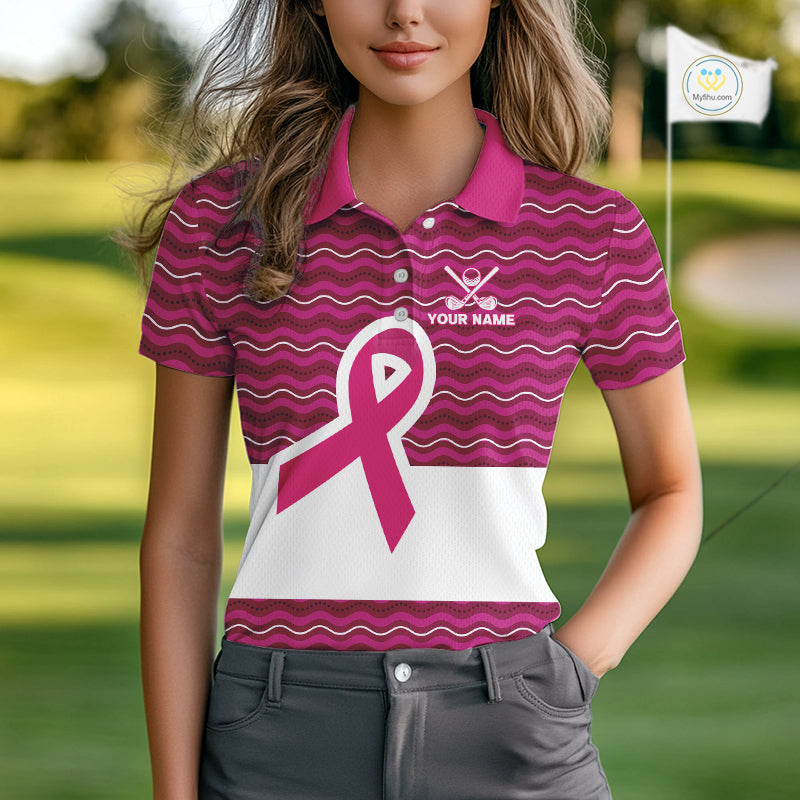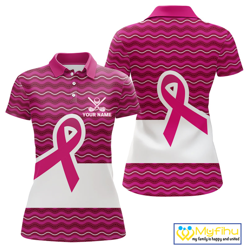 Pink ribbon Women polo golf shirts Custom Breast cancer awareness team golf attire for ladies NQS10509