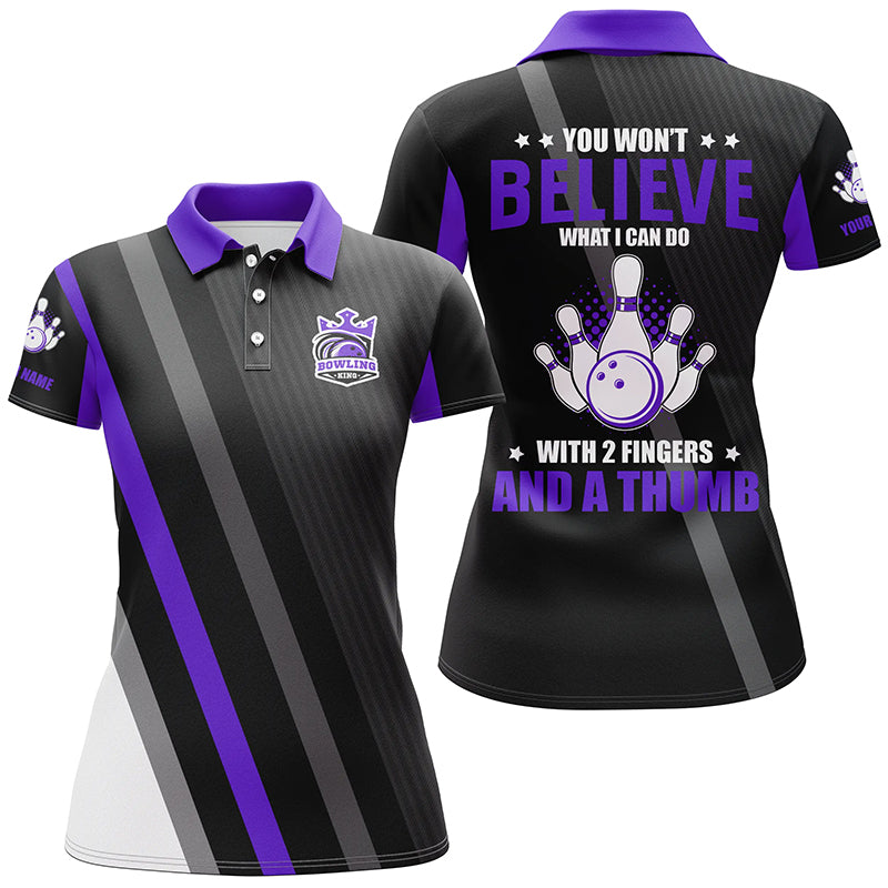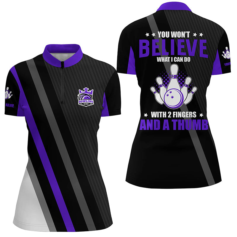 Purple & black Women bowling shirts Custom you won't believe what I can do with 2 fingers and a thumb NQS8839