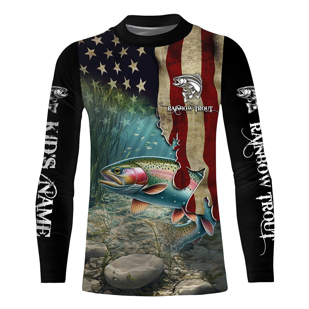 Rainbow Trout Fishing American Flag Patriotic Custom UV protection fishing shirt, Trout fishing jerseys NQS497