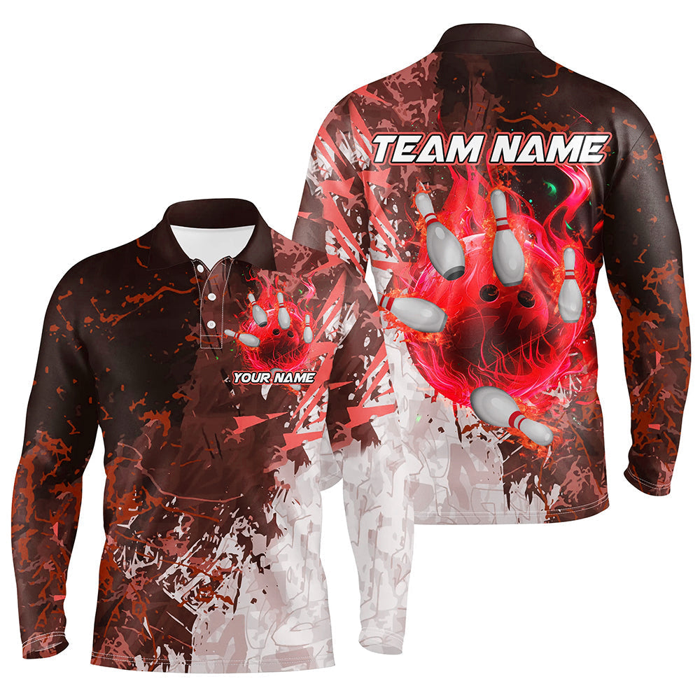 Red Camo Flame Bowling Polo, Quarter Zip Shirts For Men Custom Bowling Team Jersey Outfits NQS8703