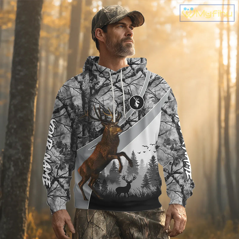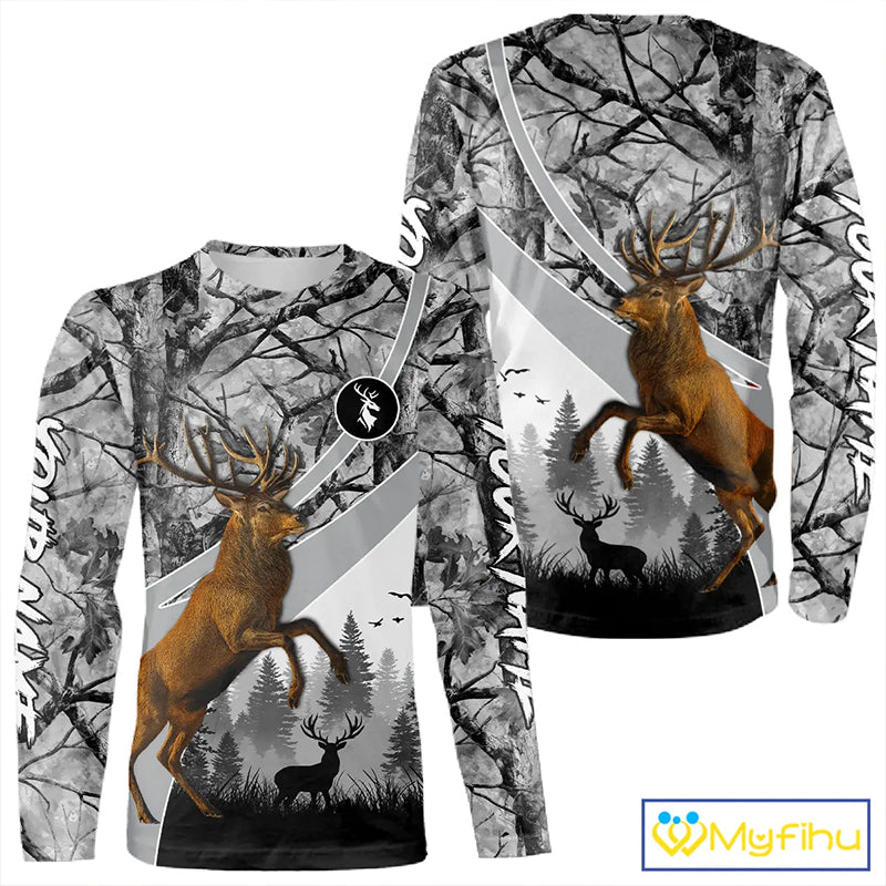 Red Deer Hunting Camo Gray Custom Name 3D All Over Print Shirt, Deer Hunting Shirt NHT211