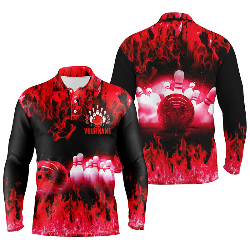 Red flame Mens polo bowling shirts, Personalized men's bowling jerseys, bowling team jerseys NQS6366