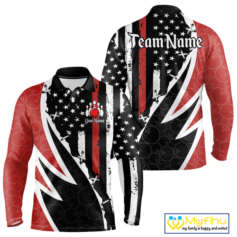 Red, White and Black American Flag Bowling Shirts for Men Custom Patriotic Team Bowling Jersey NQS10429