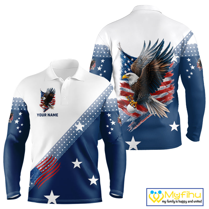 Red, White and Blue American Flag Eagle Custom Men golf polo shirt, patriotic golf outfit for men NQS10104