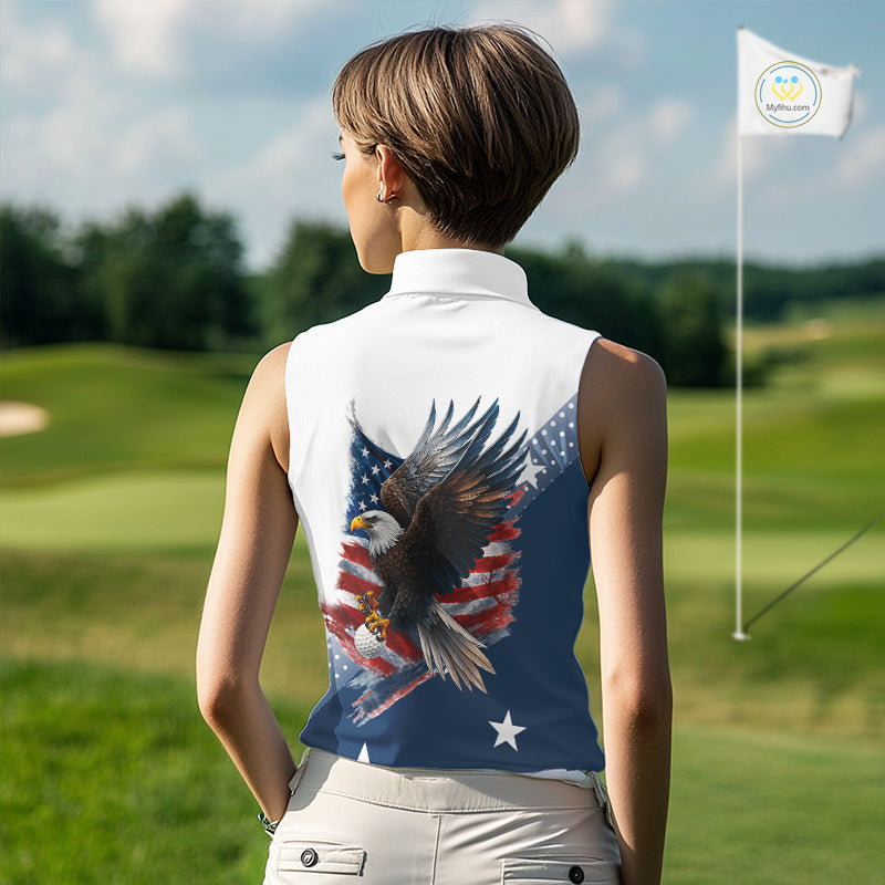 Red, White and Blue American Flag Eagle Custom Women Sleeveless polos, patriotic ladies golf outfit NQS10104