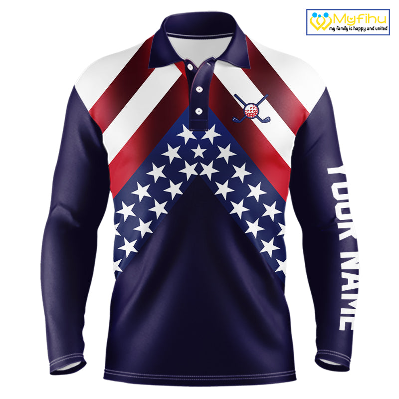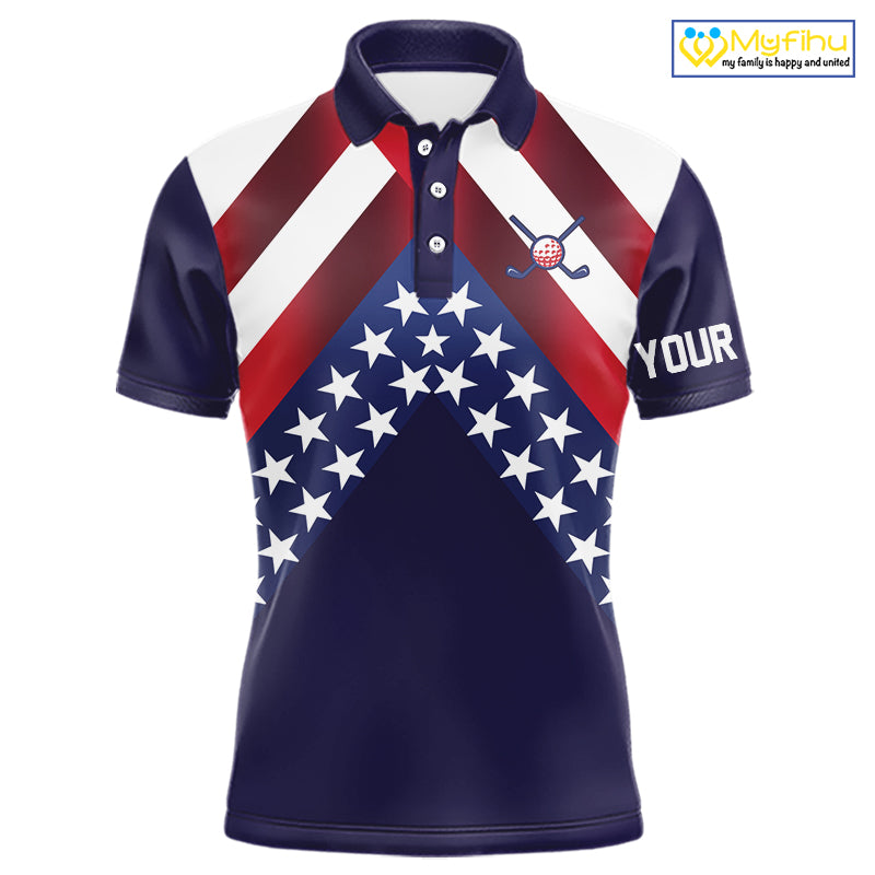 Red, White and Blue American Flag golf polo shirts for men Custom Patriotic mens golf outfit NQS10227