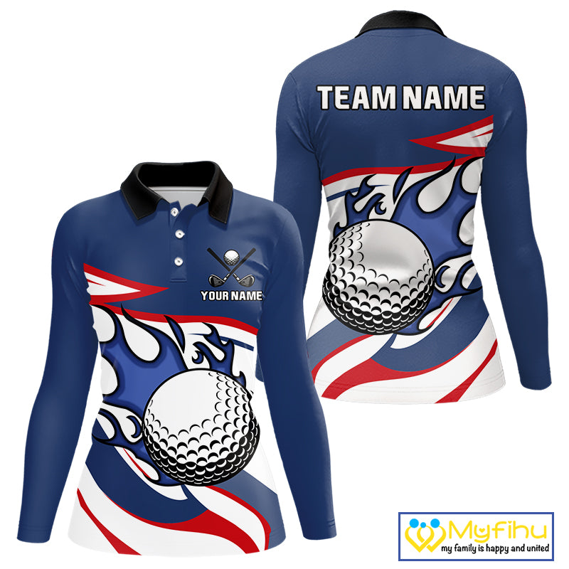 Red, White and Blue Flame golf ball Women Golf polo shirts Custom patriotic Golf Outfit For Ladies NQS10044