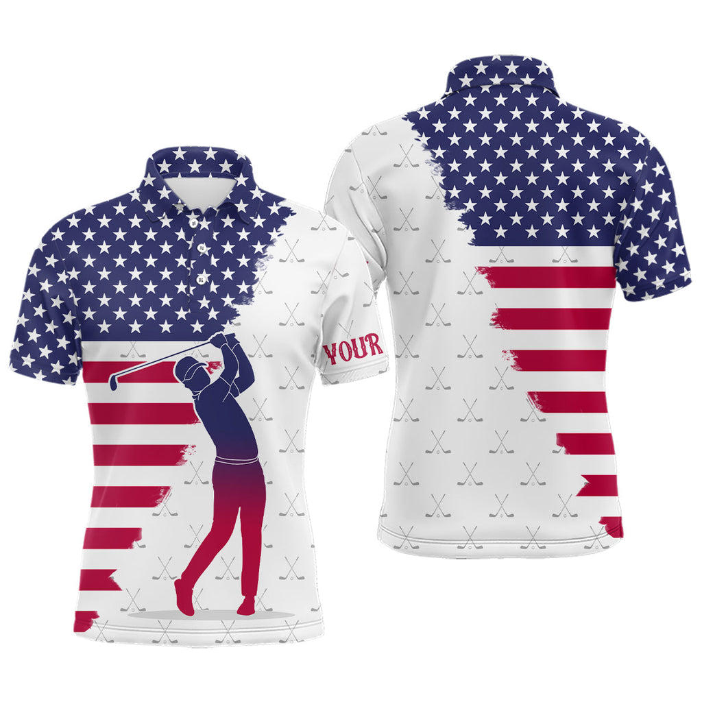 Red, White & Blue American Flag Mens Golf Polo Shirts Custom patriotic golf attire for men NQS9203