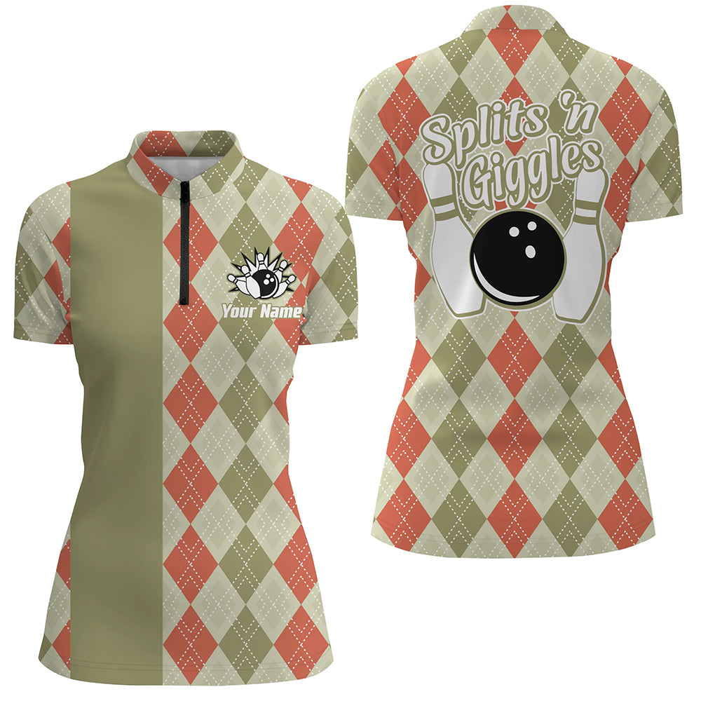 Splits 'n Giggles Women Bowling polo, 1/4 zip Shirt Personalized argyle pattern retro bowling Jerseys NQS9030