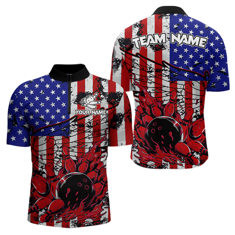 Vintage American Flag Wings Mens Bowling Polo, Quarter Zip Shirt Custom Patriotic Team bowling jersey NQS9314
