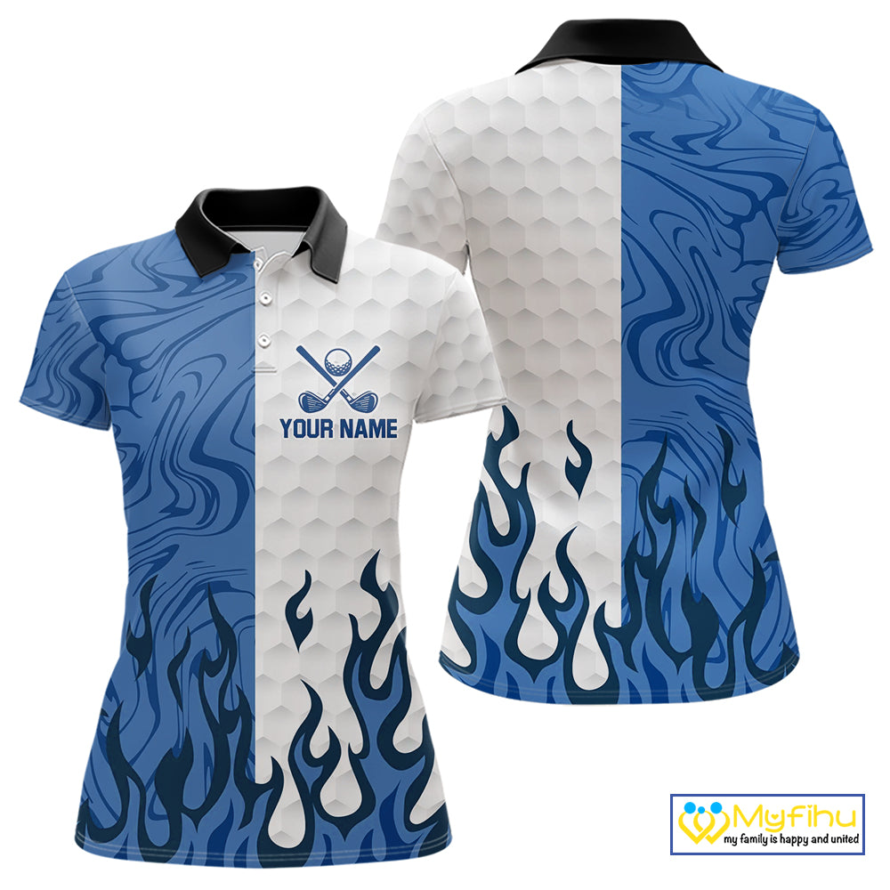 White and Blue Camo Flame Women Golf Polo Shirt Custom golf attire for ladies, personalized golf gift NQS10709