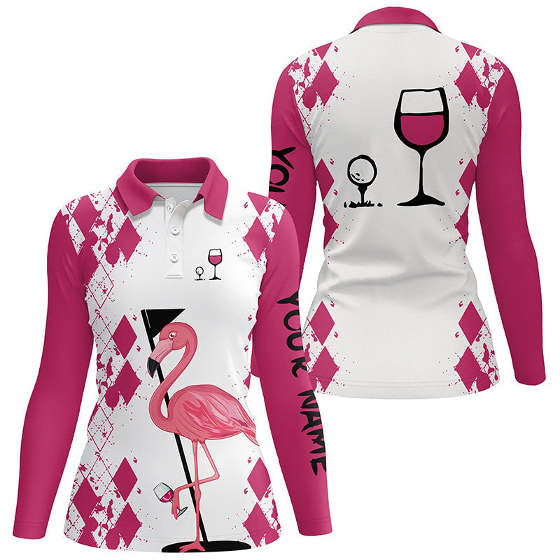 White Pink womens golf shirt Flamingo Golf & wine custom name womens golf polo shirt NQS5117