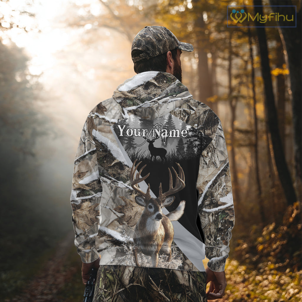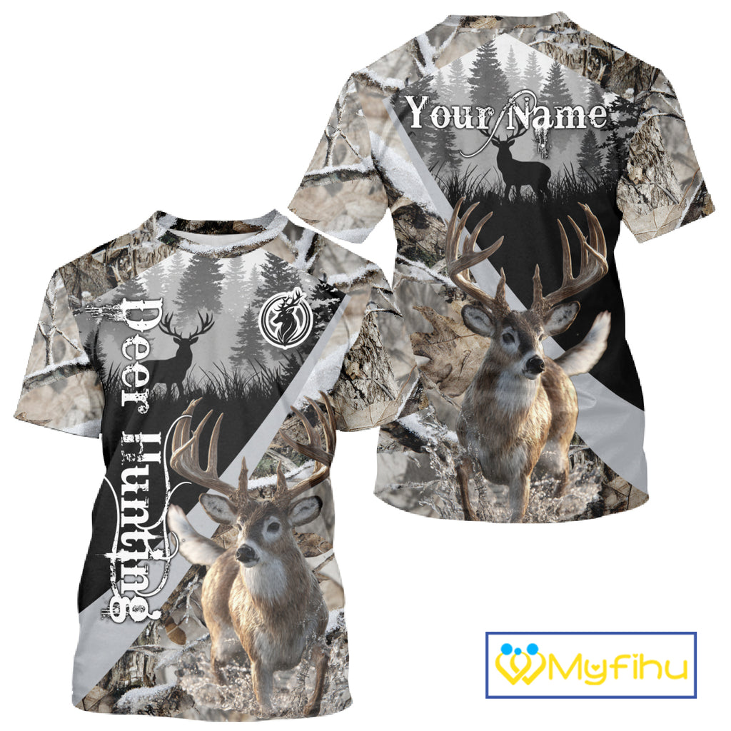 Whitetail Deer Hunting 3D All Over Print Winter Camo Shirt Custom Name Gifts For Hunter NHT215