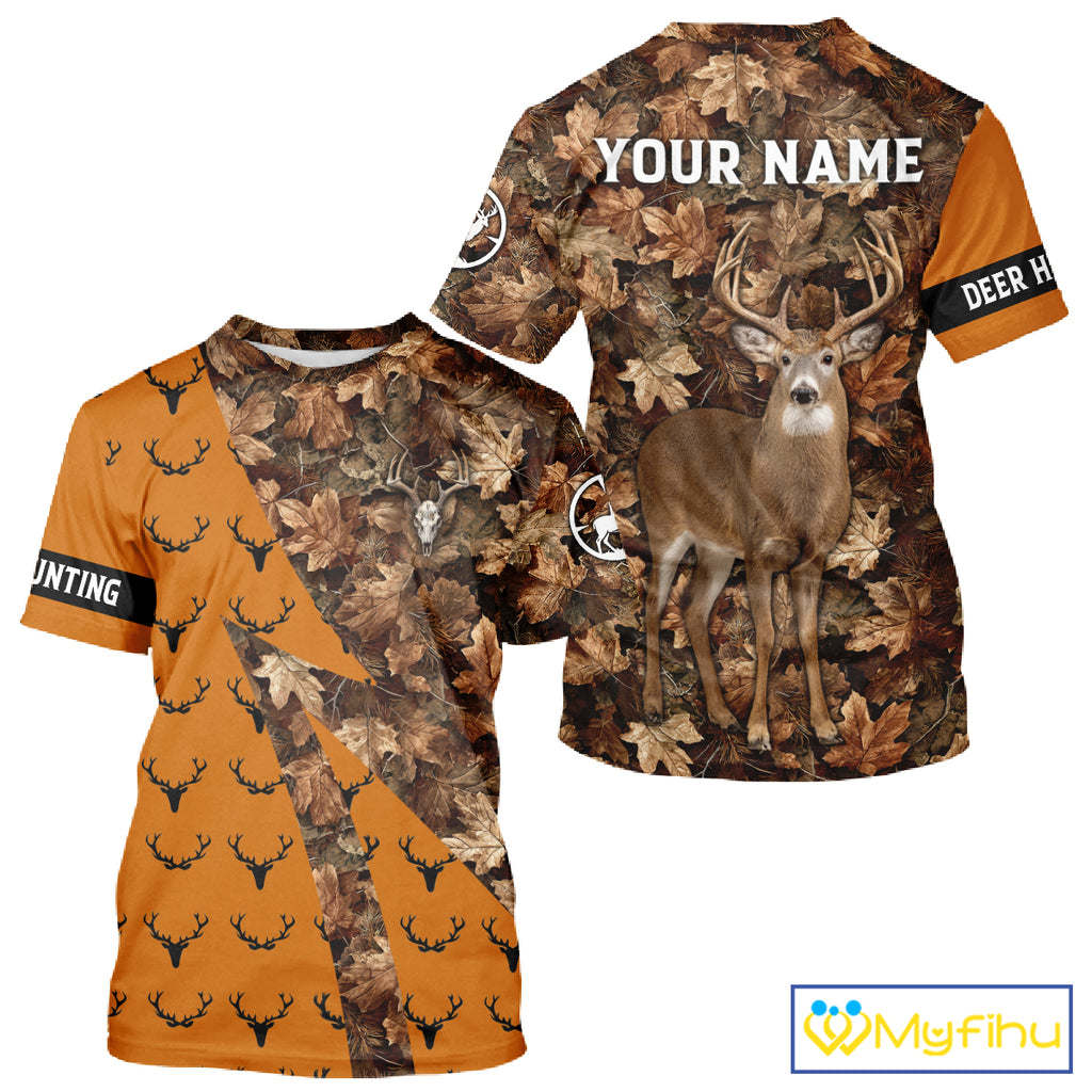 Whitetail Deer Hunting Orange and Autumn Camo Shirts, Personalized Hunting Shirt NHT212