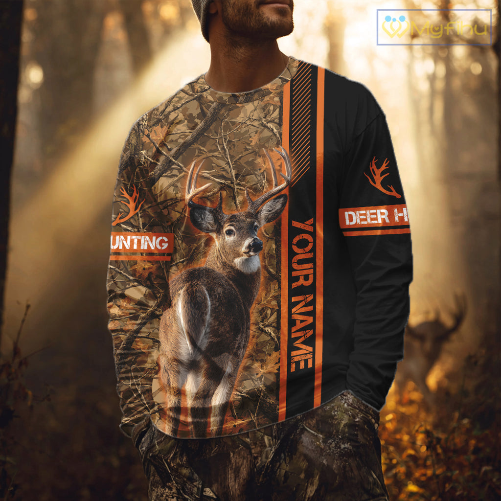 Inspired by the thrill of the hunt and the beauty of the outdoors, this shirt combines durability, comfort, and a unique hunting vibe. Customize it with your name or preferred design elements — from deer graphics to scenic landscapes — to create a one-of-a-kind piece. A perfect gift for passionate deer hunters and outdoor lovers, especially during hunting season.