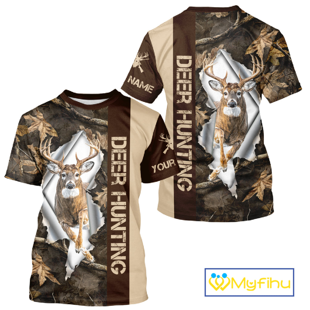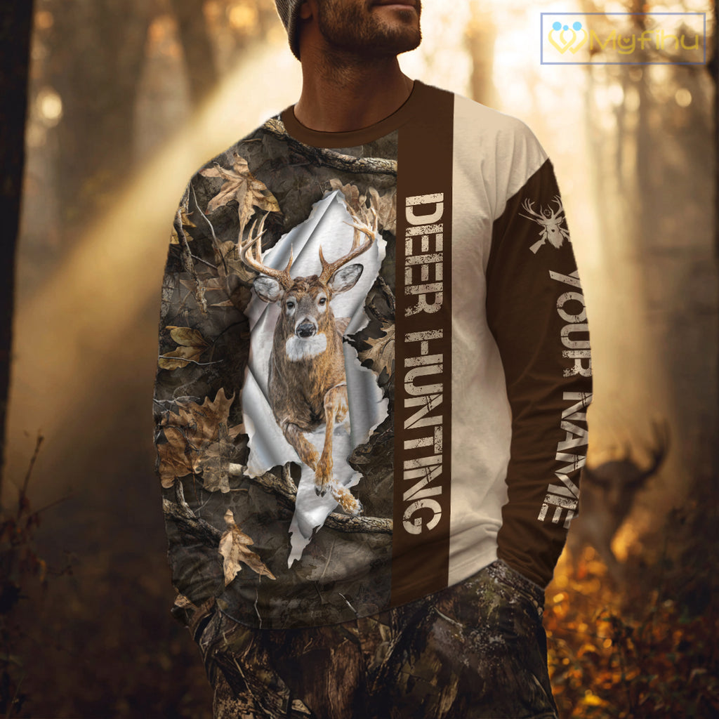 Whitetail Deer Hunting Shirt Forest Camo Custom Name Hunting Clothes For Deer Hunters NBT329