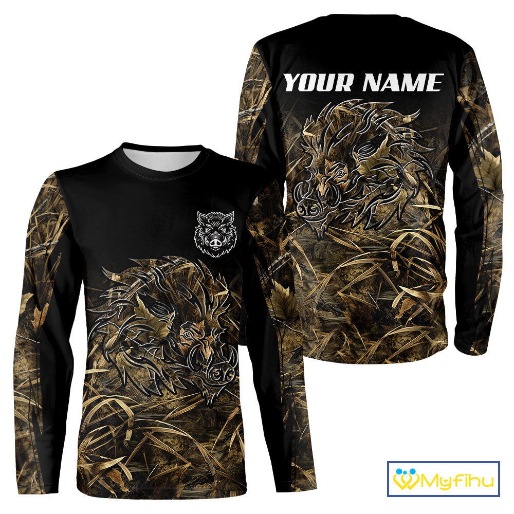 Wild Boar Hunting Camouflage 3D Custom Name Shirts, Custom Boar Hunting Gifts NBT207
