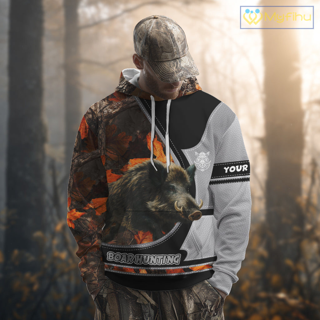 Wild Boar Hunting Gray Black Orange Camo 3D All Over Printed Shirts Custom Name Hunting Gift NHT104