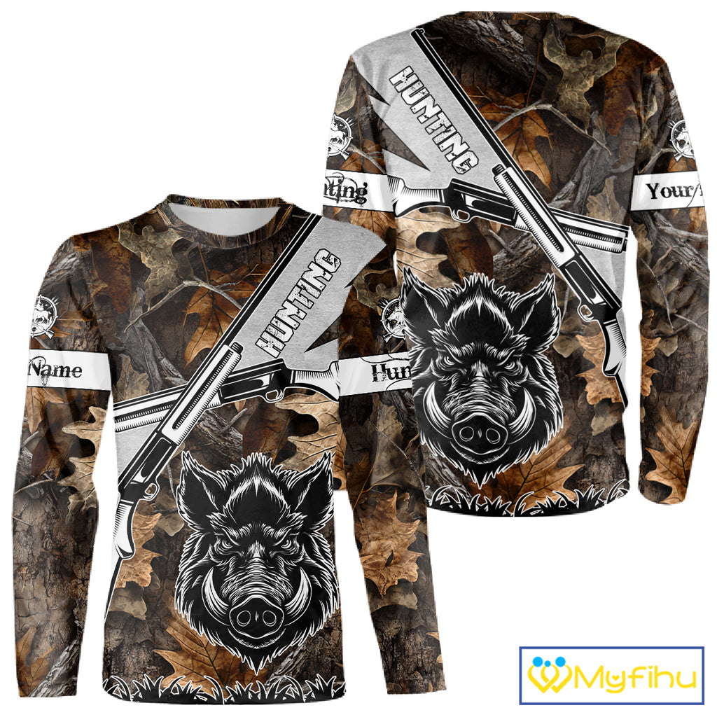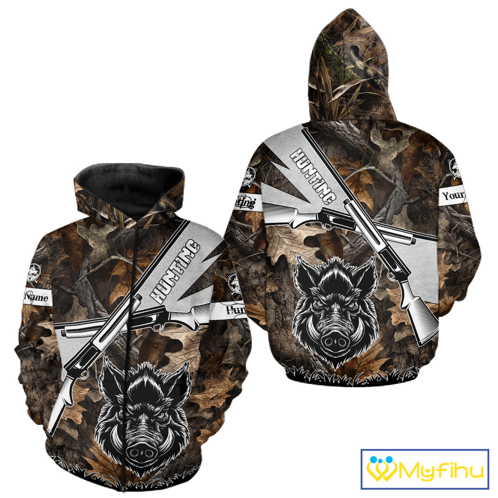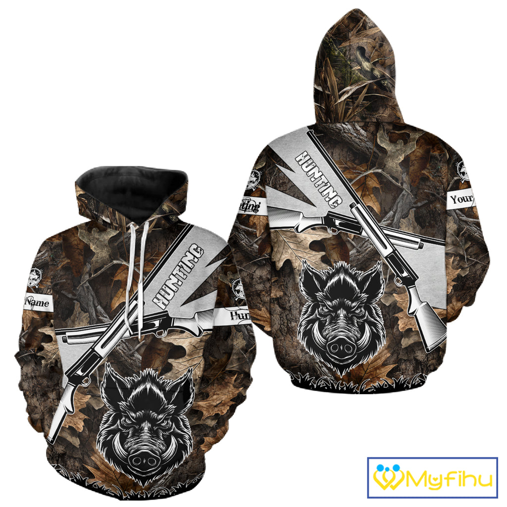 Wild Boar Hunting Rifle Vector 3D Printed Custom Name Shirts, Boar Hunting Clothing, Hunting Gifts NBT219