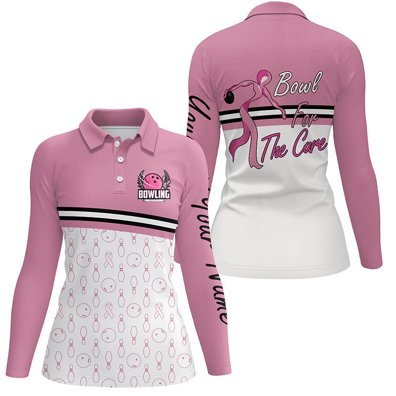 Women bowling polo shirt Custom bowl for the cure Breast Cancer Awareness Pink Ribbon bowling jersey NQS6337
