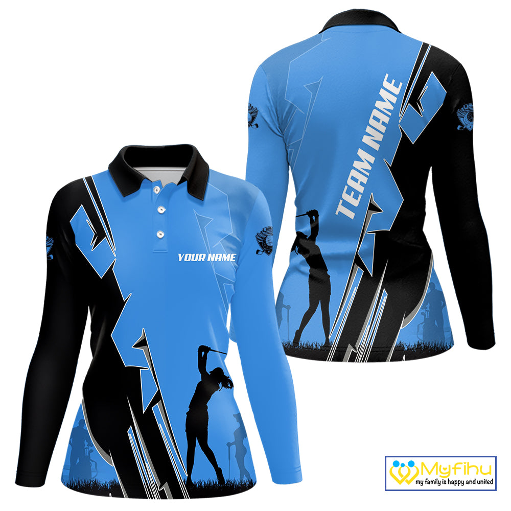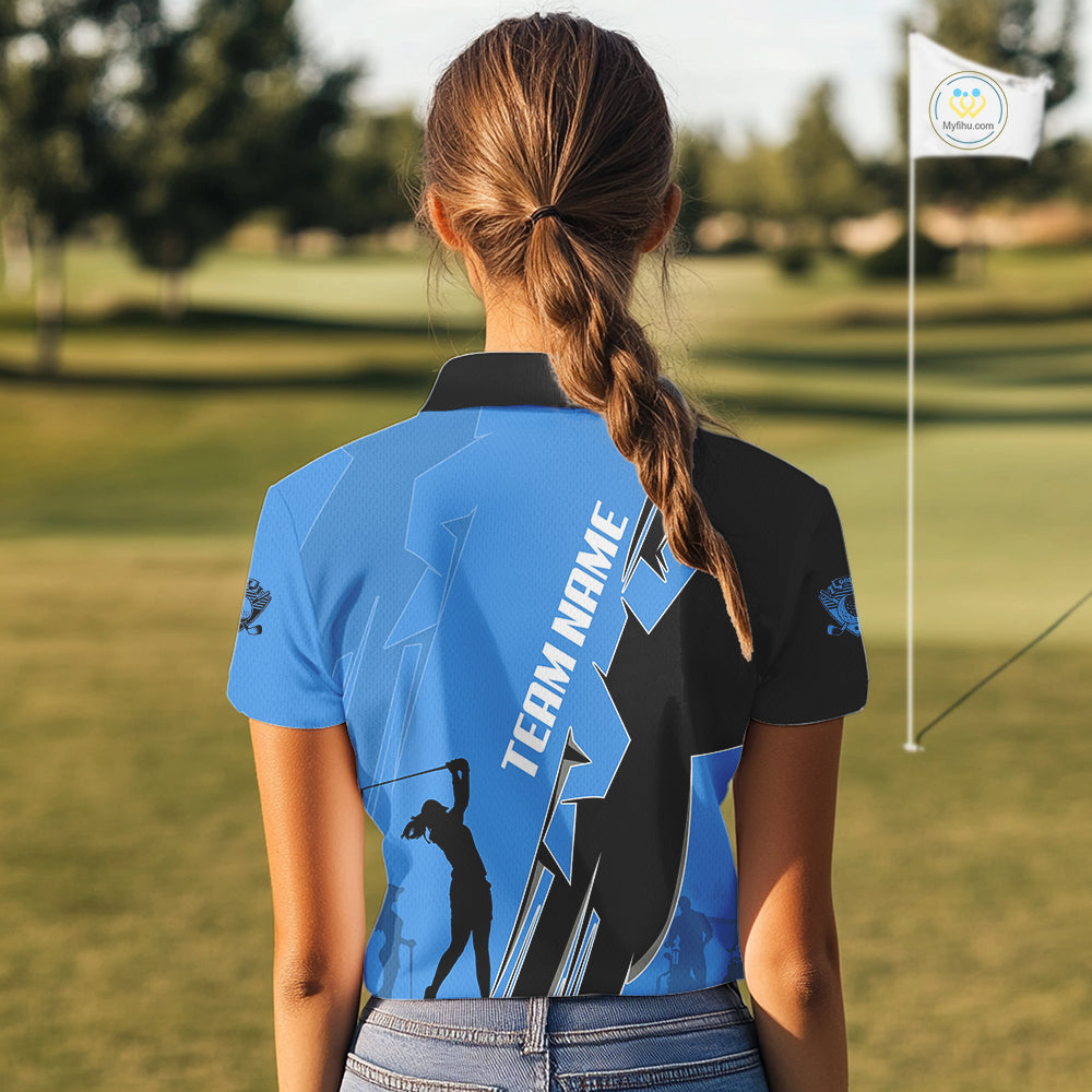 Women golf polo shirts custom blue and black golf tops for ladies, best golf gifts NQS10062