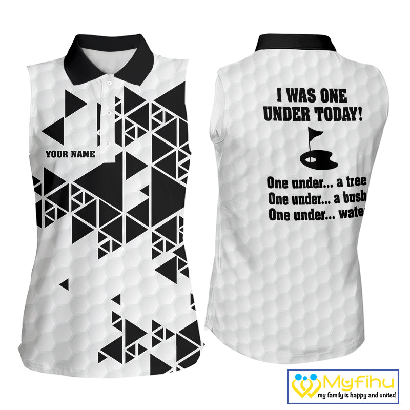 Women sleeveless polo shirt black and white custom I was one under today, under a tree, bush, water NQS10164