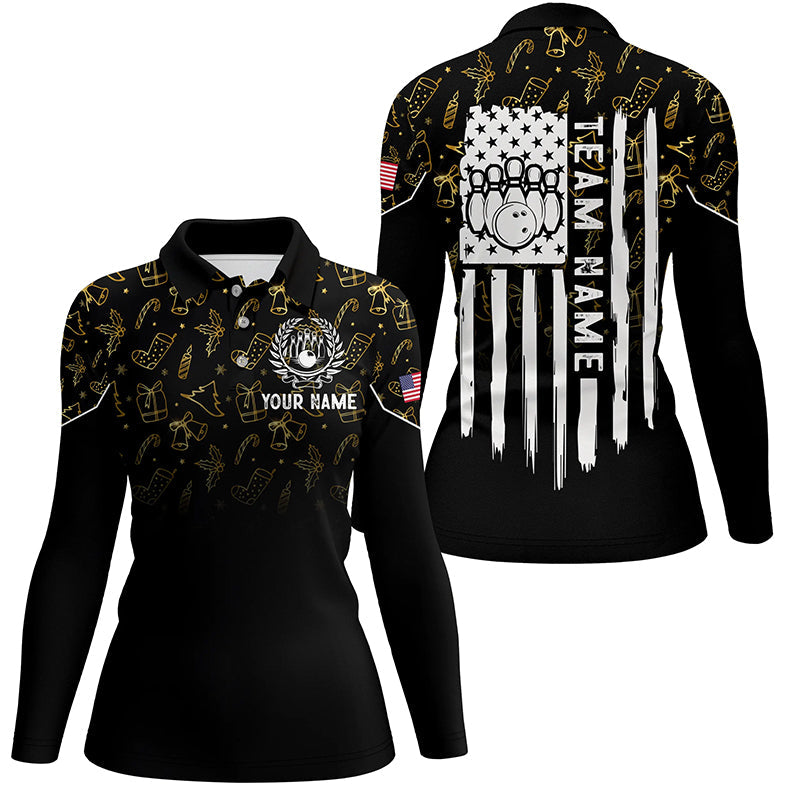 Womens bowling shirt Custom Gold Christmas pattern American flag patriotic bowling team jerseys NQS8756