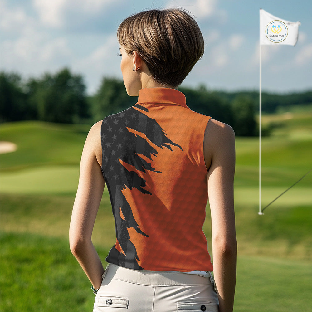 Womens sleeveless golf polos shirts orange golf ball skin black American flag ladies golf apparel NQS10070