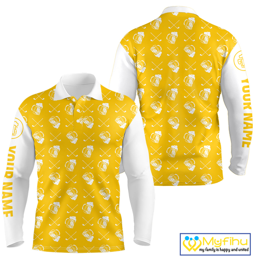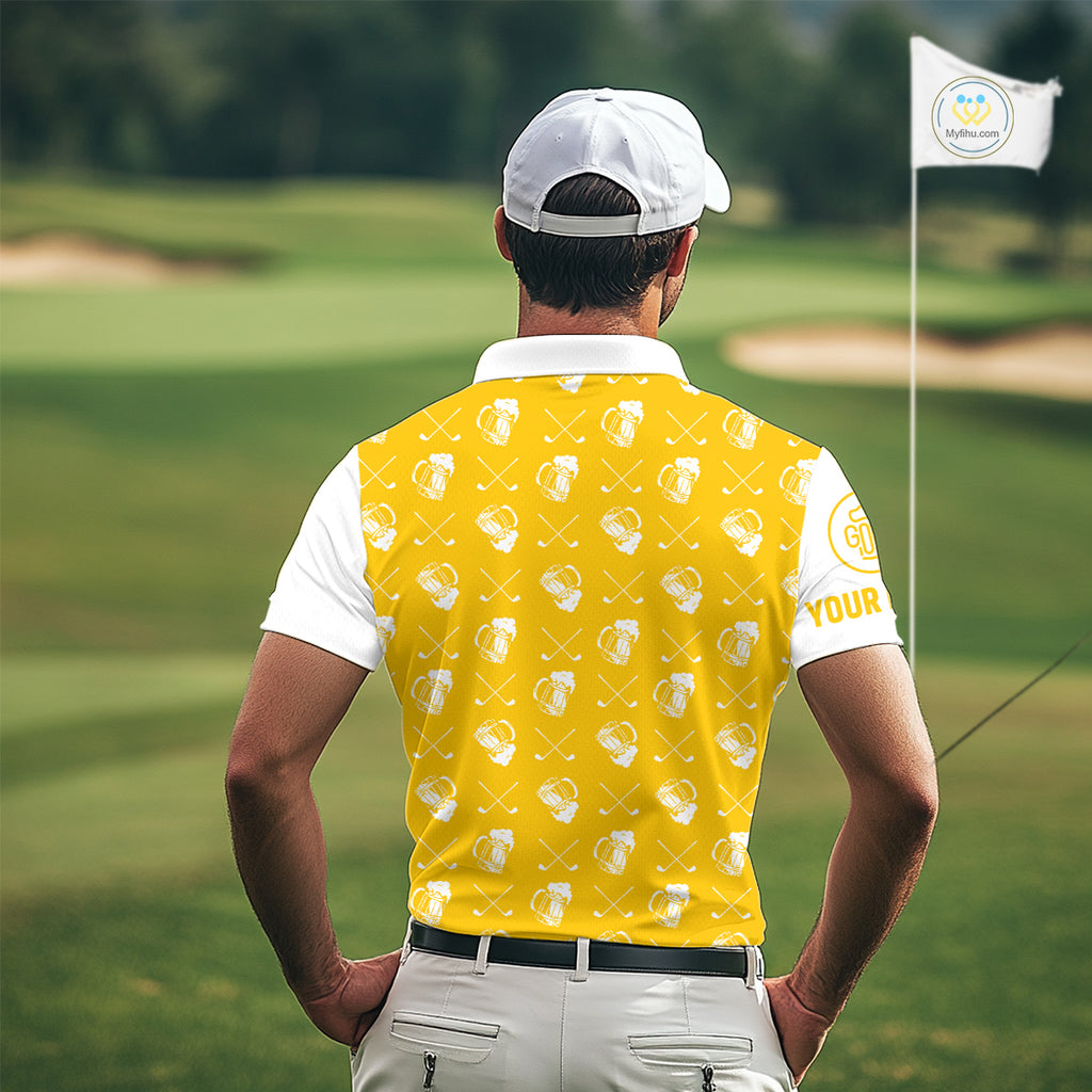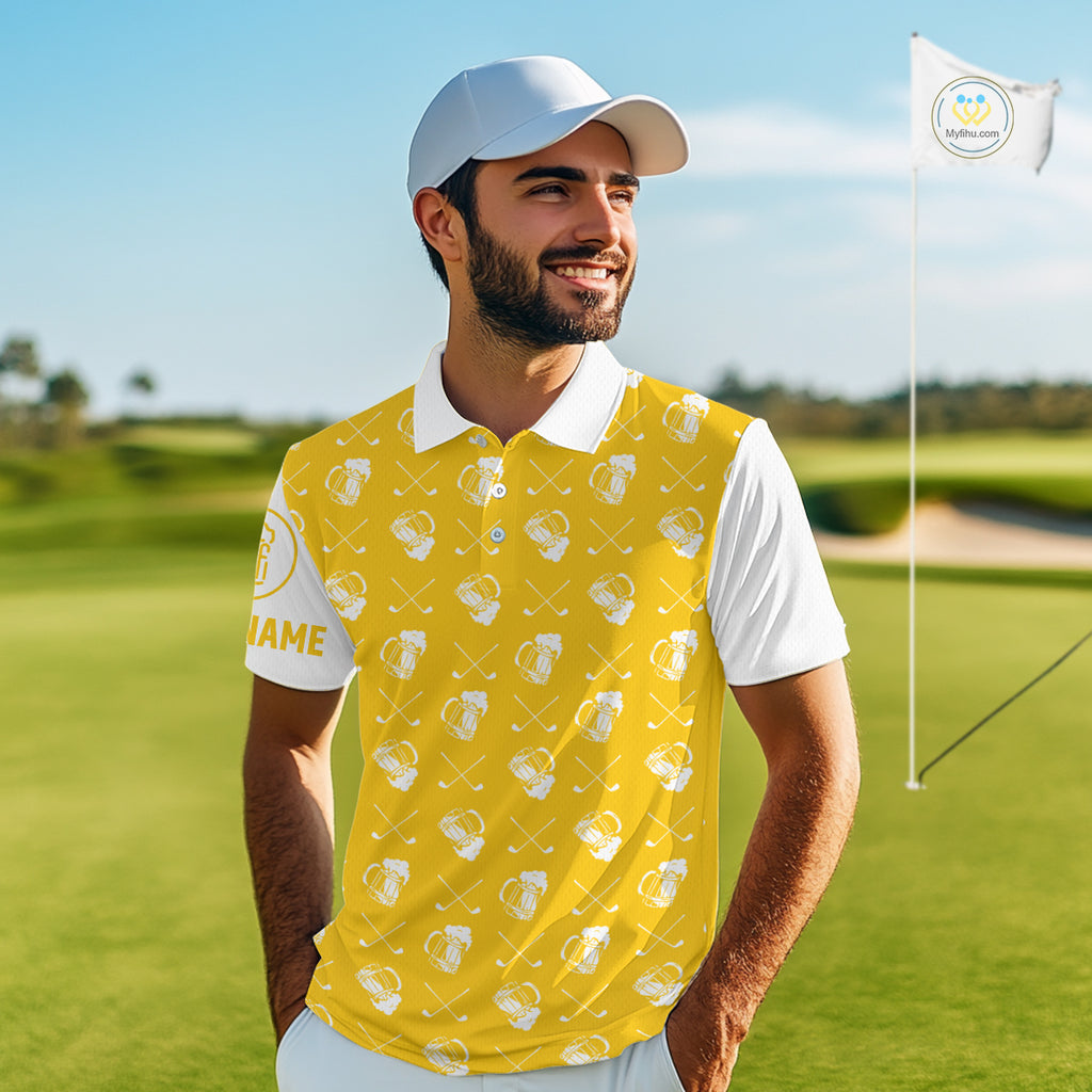 Yellow and white golf pattern Mens Golf polo shirts custom name golf beer outfit men golf clothes NQS9855