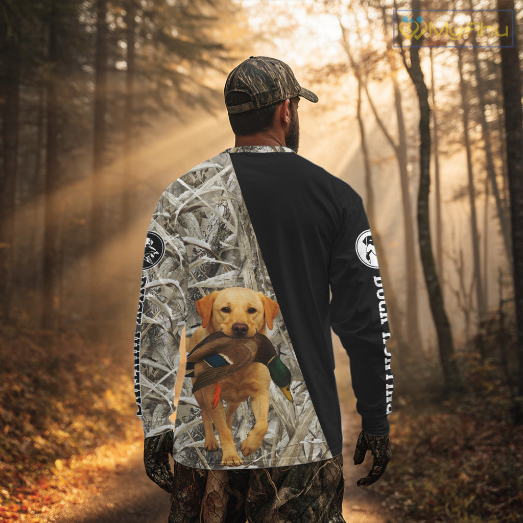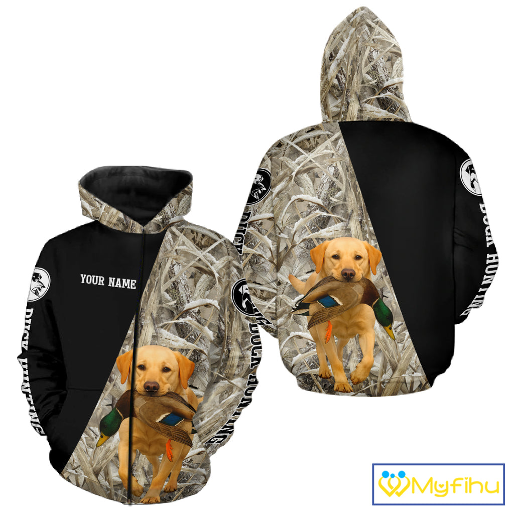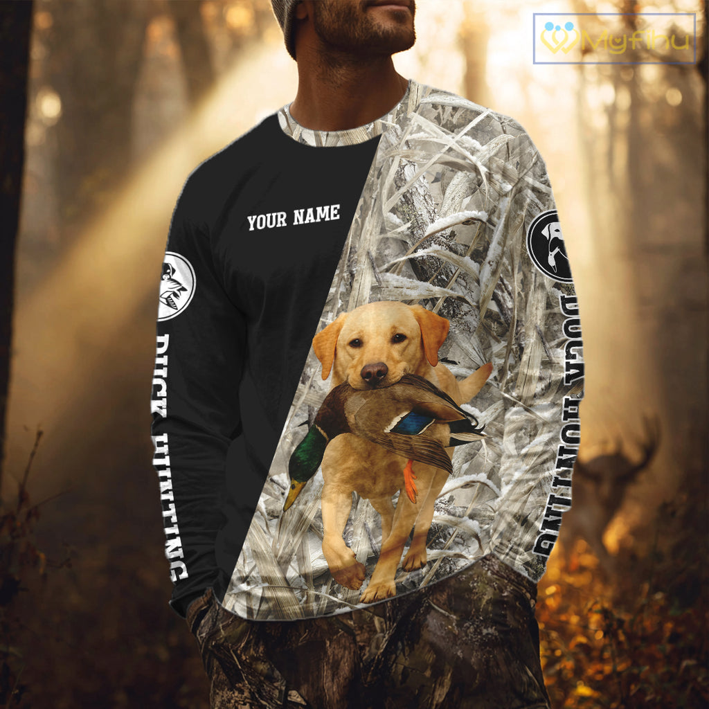 Yellow Lab Duck Hunting Shirt, Custom Name 3D Black Camo Winter Waterfowl Hunting Gear NHT233