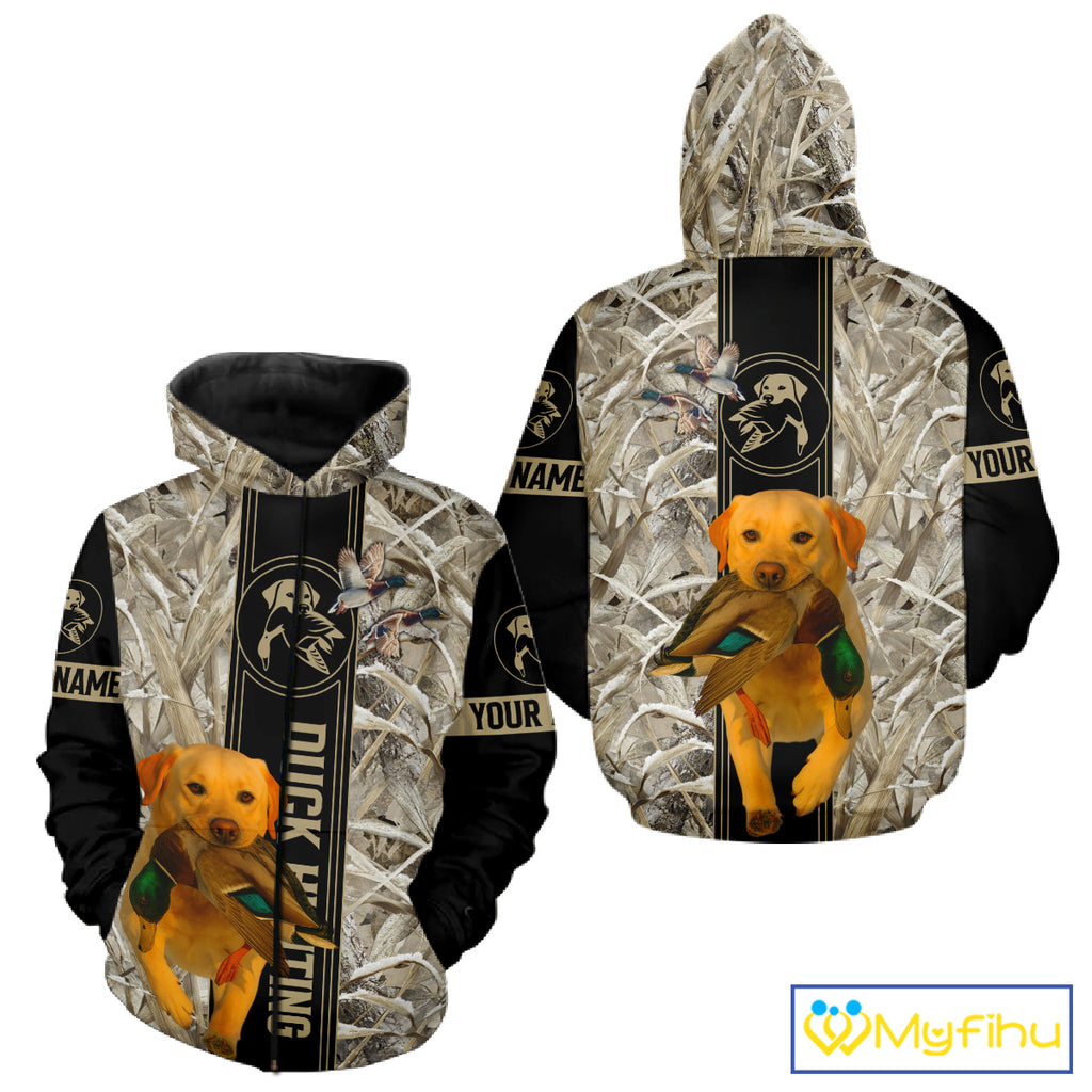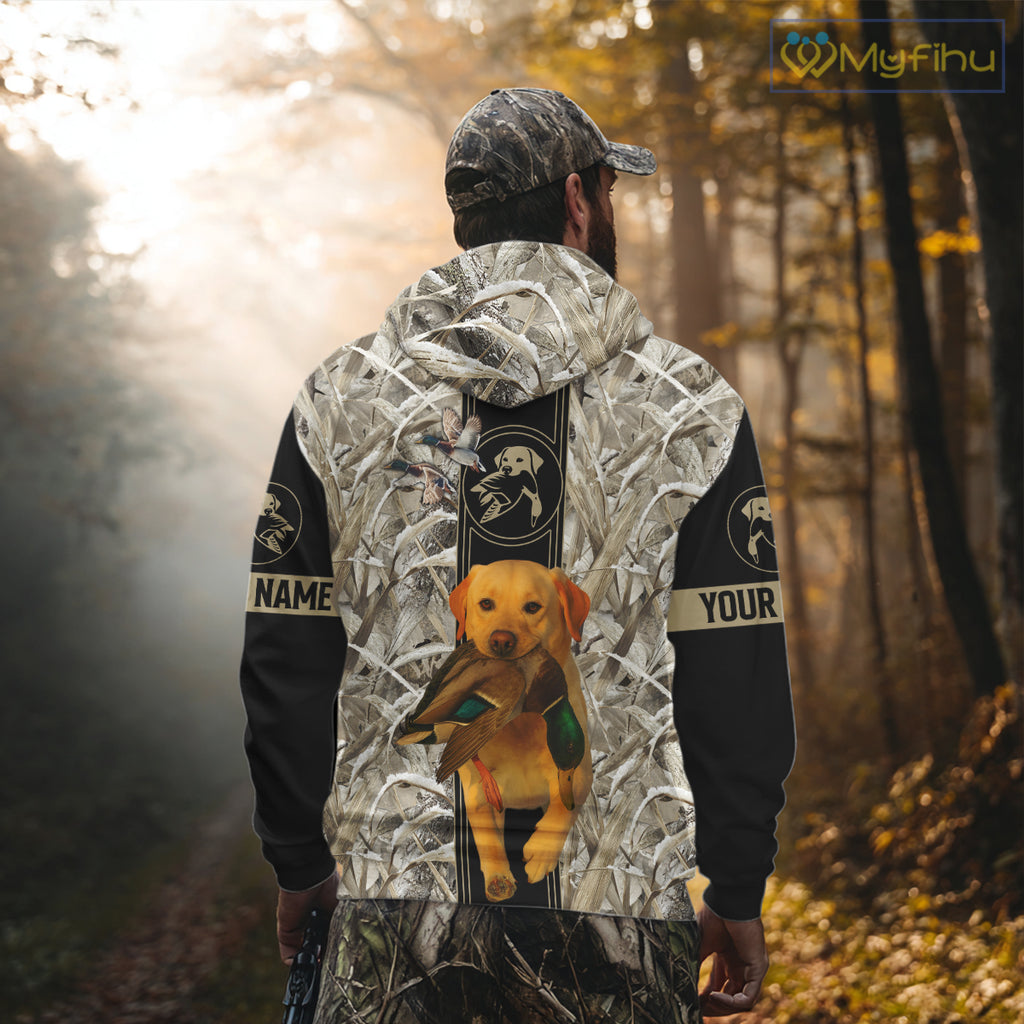Yellow Lab Mallard Duck Hunting Winter Camo 3D Shirt, Custom Name Waterfowl Hunting Clothes NHT232