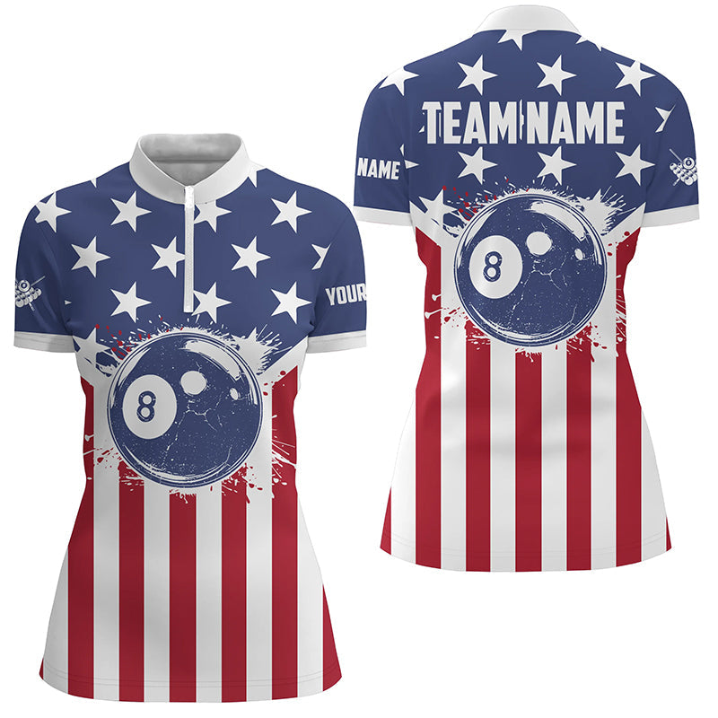 Personalized American Flag 8 Ball Billiard Shirts For Women Custom Patriotic Billiard Pool Jerseys TDM2021