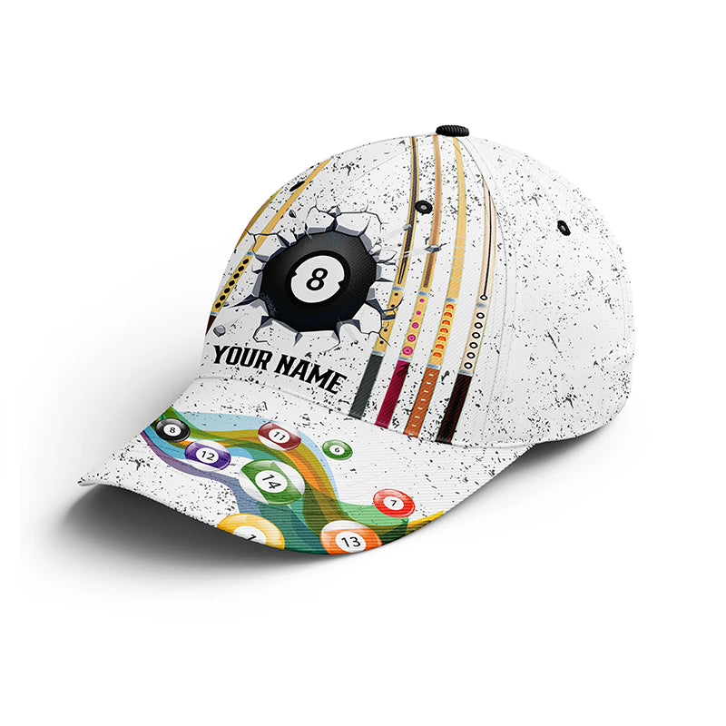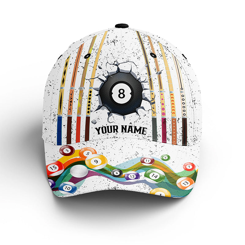 8 Ball Billiards White Grunge Custom Name Cap Hats For Men And Women, Personalized 3D Billiard Hats VHM0274