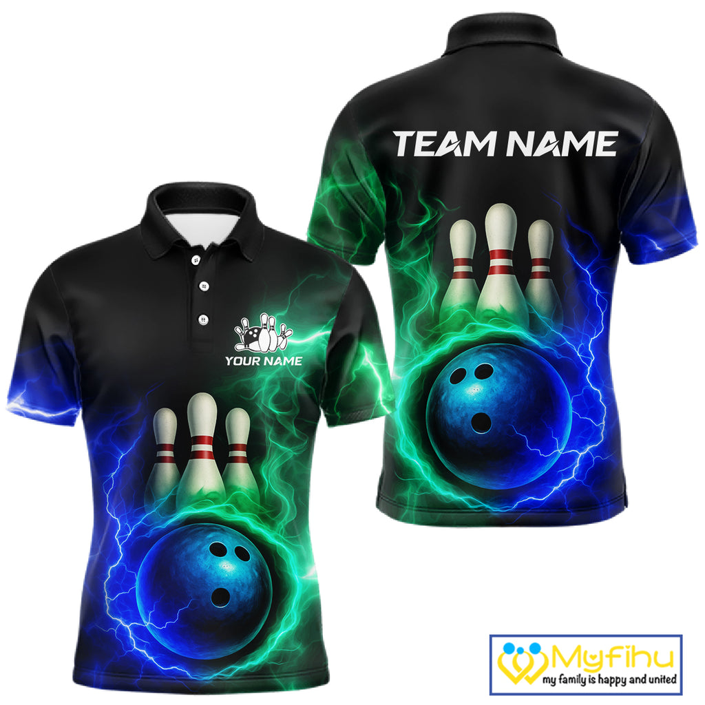 Blue and Green Lightning thunder Black Bowling Shirts For Men custom Bowling Team Jerseys NQS10379