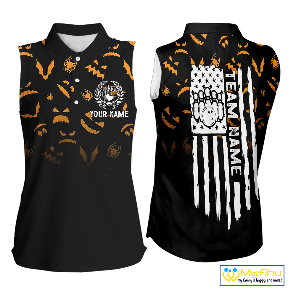 Custom American flag patriotic funny halloween pattern Bowling  Sleeveless polos bowling team jersey NQS10414