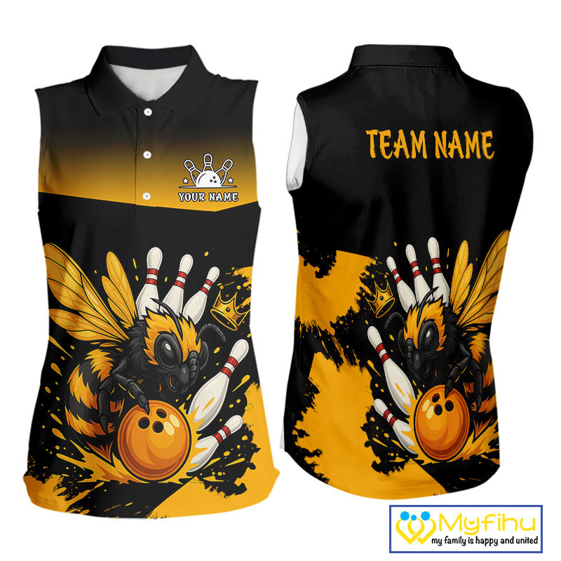 Custom Black and Yellow Bee Bowling Sleeveless Polo Shirt, Bee Bowling Team Bowlers Outfit NQS10361