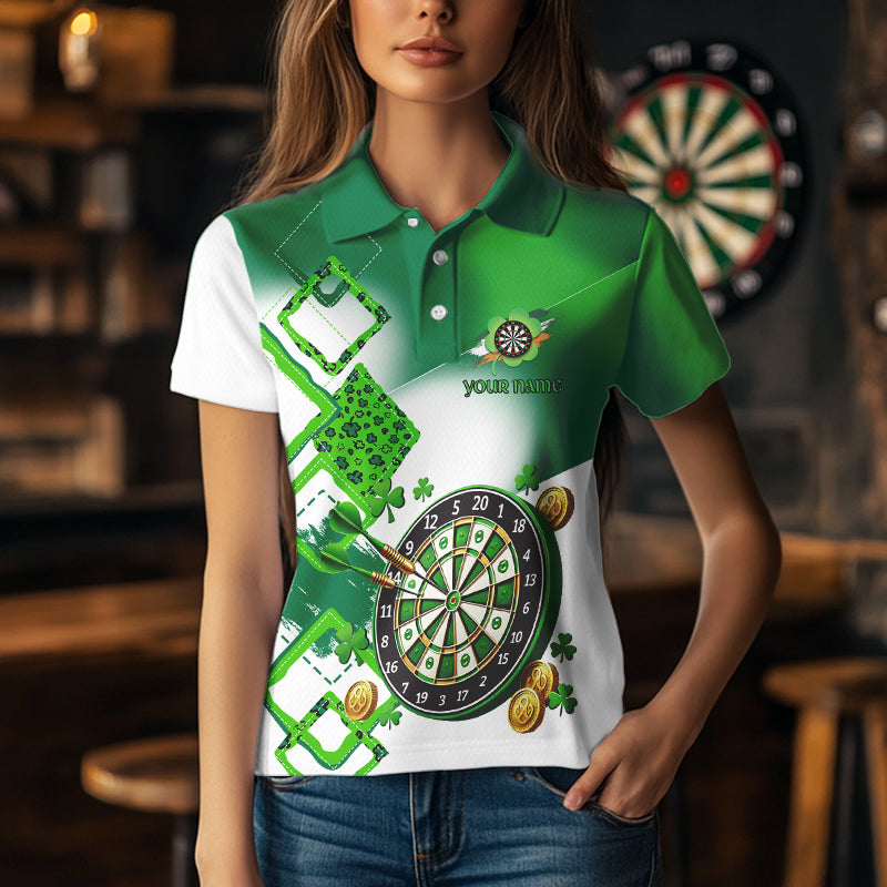 Green shamrock Women Darts Polo, Quarter Zip shirts Custom St Patrick Day team league darts jersey NQS9557