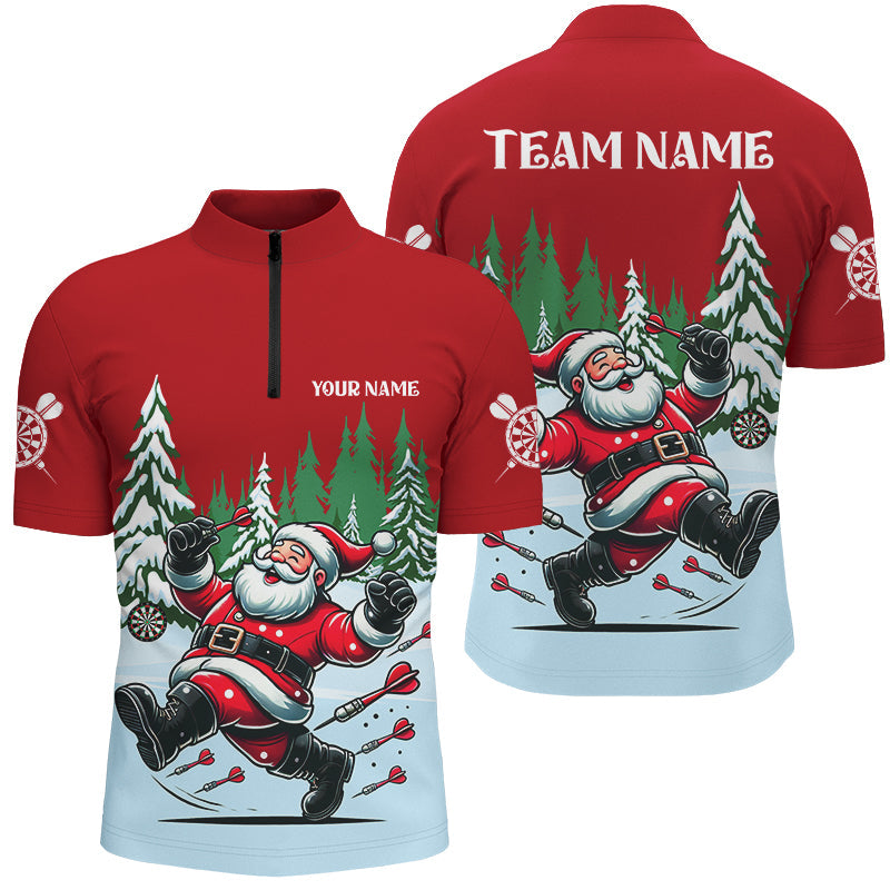 Christmas Dart Shirts For Men Custom 3D Funny Santa Print Darts Shirts Short Sleeve Dart Jerseys TDM2845