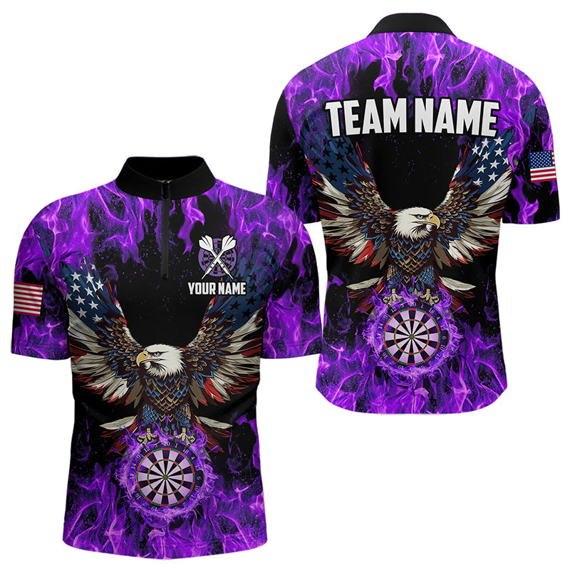 Purple Flame American Flag Eagle Custom 3D Dart Shirts For Men, Patriotic Darts League Team Jersey TDM3326
