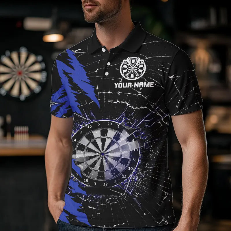 Black And Blue Darts Board Break Glass Custom Dart Shirts For Men, Darts Team Shirts Dart Jerseys TDM3494