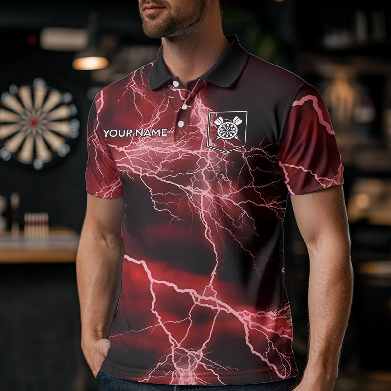 Black And Red Thunder Lightning Dart Shirts With Pocket For Men Custom 3D Darts Team Jerseys TDM3523