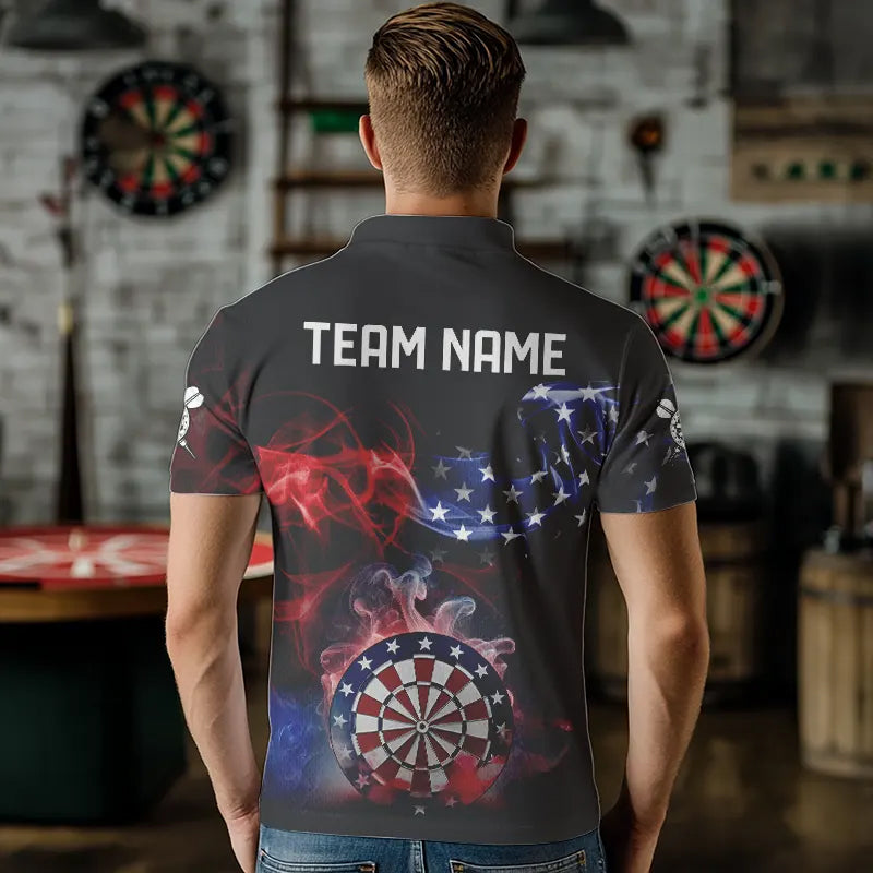 Personalized Dartboard American Flag Smoke Dart Shirts For Men Custom Patriotic Team Darts Jerseys TDM3536